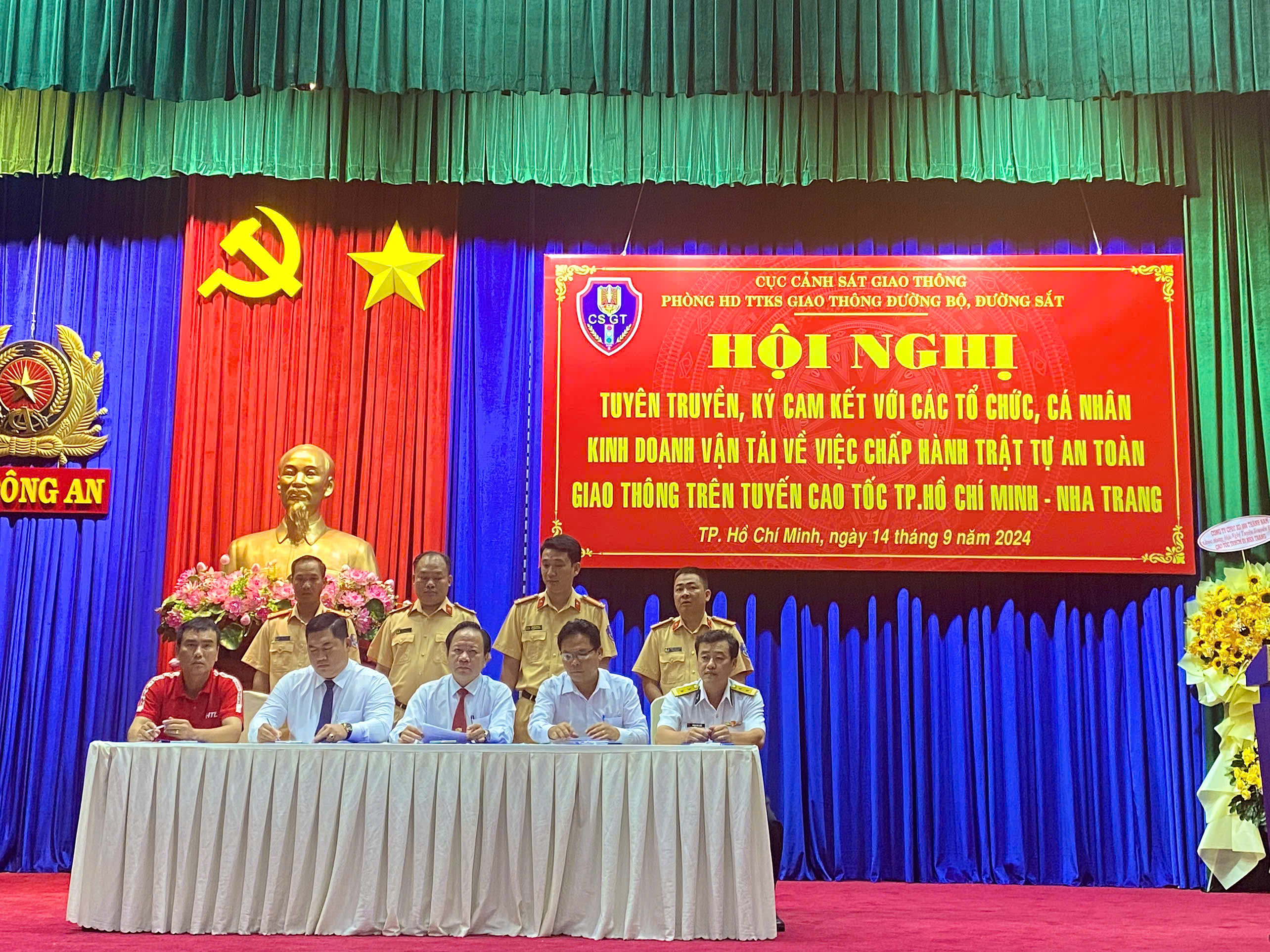 Chiều ngày 14/09/2024, tại Hội trường Nhà khách Phương Nam - 252 Nguyễn Trãi, Phường Nguyễn Cư Trinh, Quận 1, TP. HCM đã diễn ra Hội nghị tuyên truyền, ký cam kết với các tổ chức, cá nhân kinh doanh vận tải về việc chấp hành trật tự an toàn giao thông trên tuyến cao tốc TP.HCM - Nha Trang do Phòng Hướng dẫn Tuần tra Kiểm soát giao thông Đường bộ, Đường sắt - Cục cảnh sát giao thông tổ chức. Hội nghị nhằm nâng cao nhận thức, ý thức tự giác chấp hành pháp luật cho đội ngũ lái xe và chủ xe, từ đó xây dựng văn hóa giao thông trong cộng đồng, góp phần ngăn chặn các hành vi vi phạm, bảo đảm trật tự an toàn giao thông trên cao tốc.