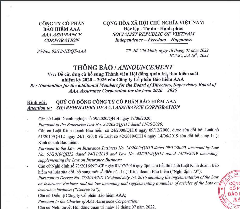 01. Thông báo đề cử, ứng cử thành viên Hội đồng quản trị, Ban kiểm soát nhiệm kỳ 2025-2030. Tải về