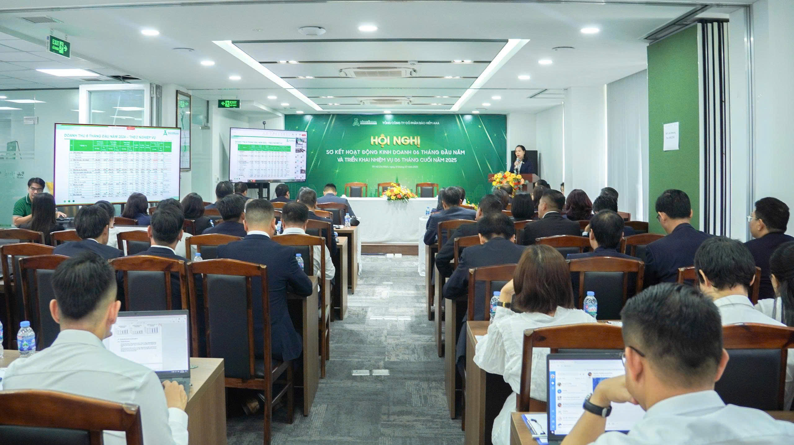 Ngày 11/7/2025, tại Trụ sở chính Tổng Công ty Cổ phần Bảo hiểm AAA đã diễn ra Hội nghị sơ kết hoạt động kinh doanh 06 tháng đầu năm và triển khai nhiệm vụ 06 tháng cuối năm 2025. Sự kiện có sự tham dự của ông Nguyễn Mạnh Chiến – Chủ tịch Hội đồng Quản trị, ông Trần Doãn Đạt – Phó Chủ tịch Thường trực HĐQT kiêm Tổng Giám đốc, các thành viên Ban Điều hành, lãnh đạo các Ban tại Trụ sở chính cùng đại diện lãnh đạo các chi nhánh trên toàn quốc.