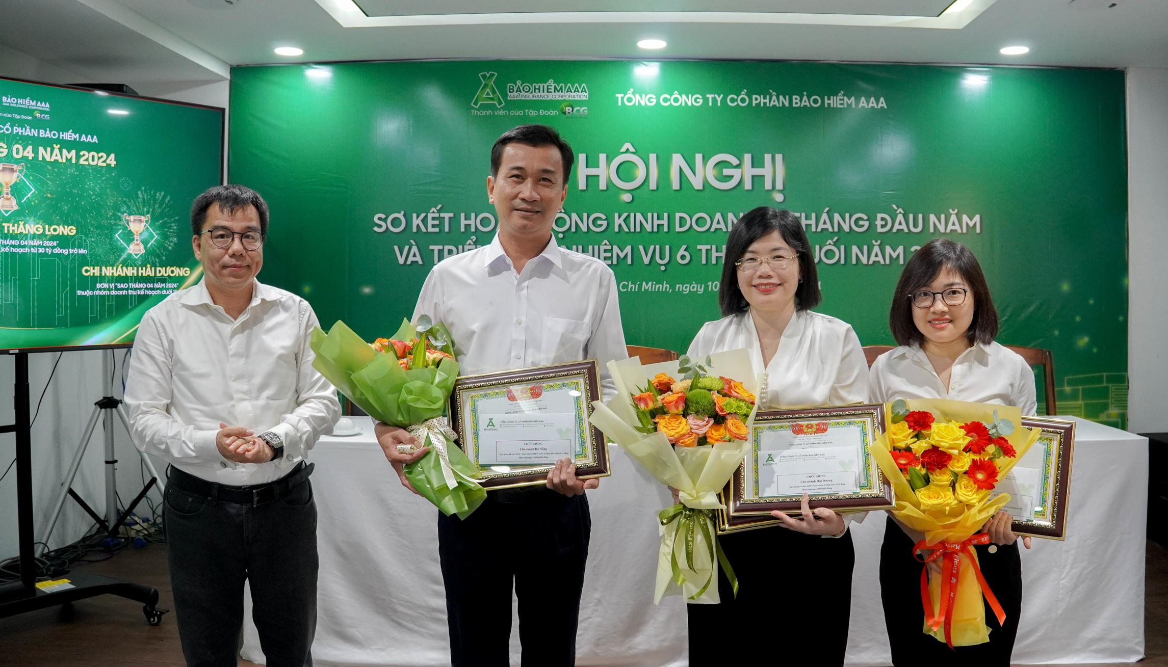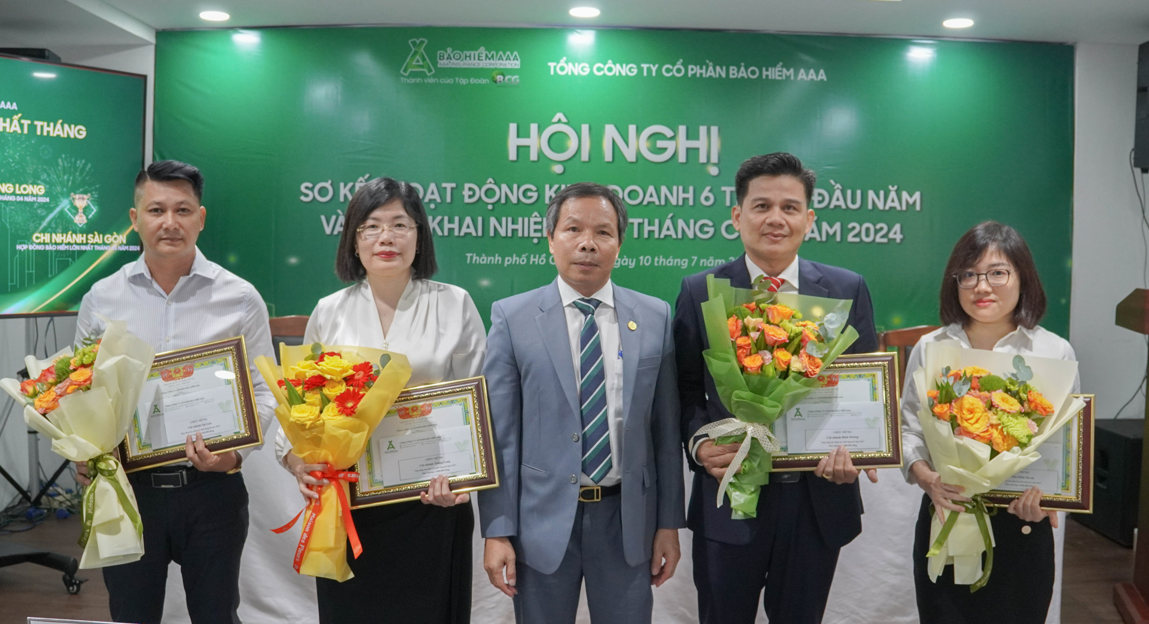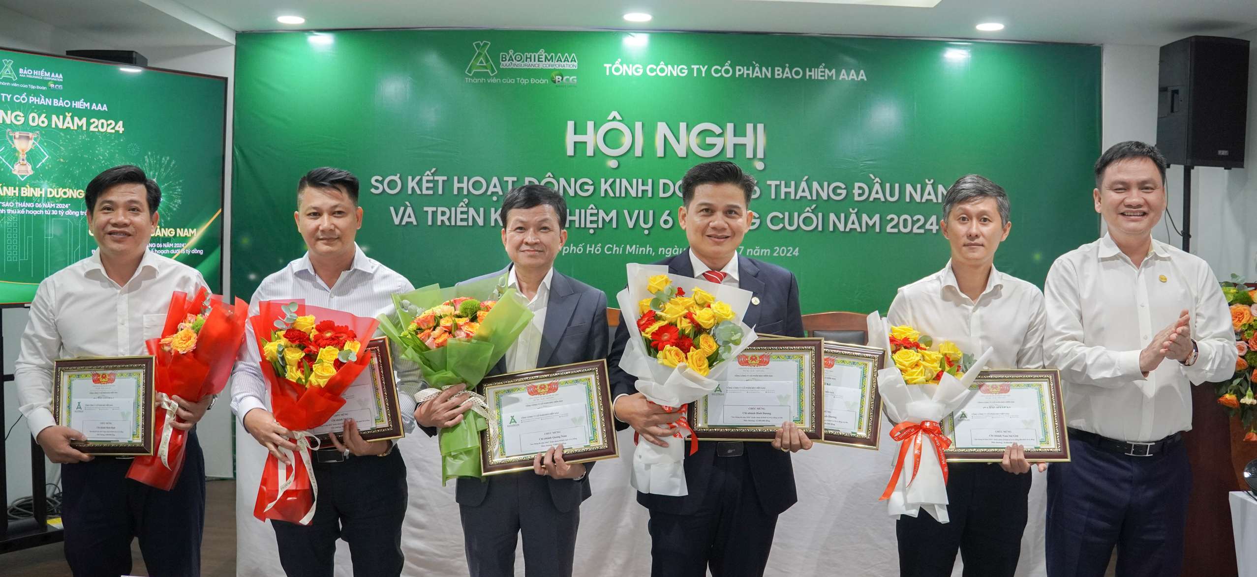 Cũng trong khuôn khổ Hội nghị, các tập thể đơn vị xuất sắc hoàn thành nhiệm vụ trong 6 tháng đầu năm 2024 được Ban Lãnh đạo Bảo hiểm AAA vinh danh trao quà và bằng khen nhằm ghi nhận nỗ lực thúc đẩy kinh doanh, đẩy mạnh thị phần và doanh thu của công ty trên thị trường bảo hiểm phi nhân thọ.