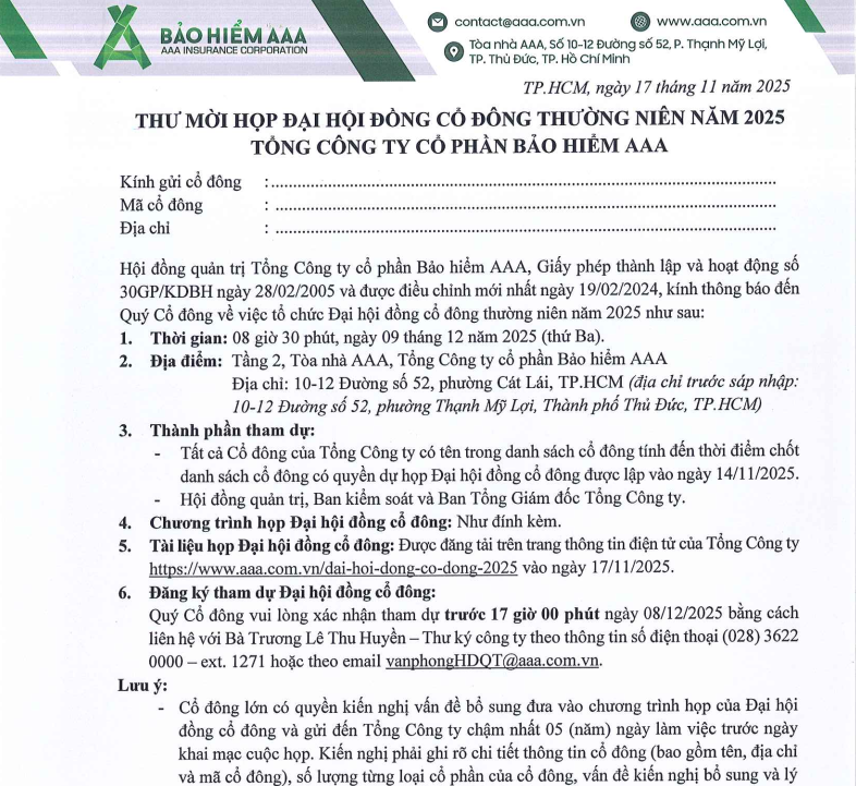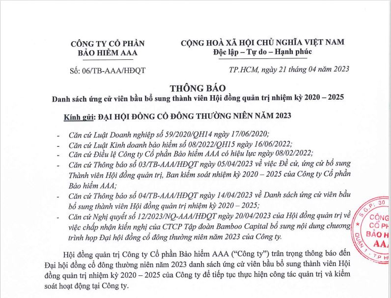01. Thông báo đề cử, ứng cử thành viên Hội đồng quản trị, Ban kiểm soát nhiệm kỳ 2025-2030. Tải về