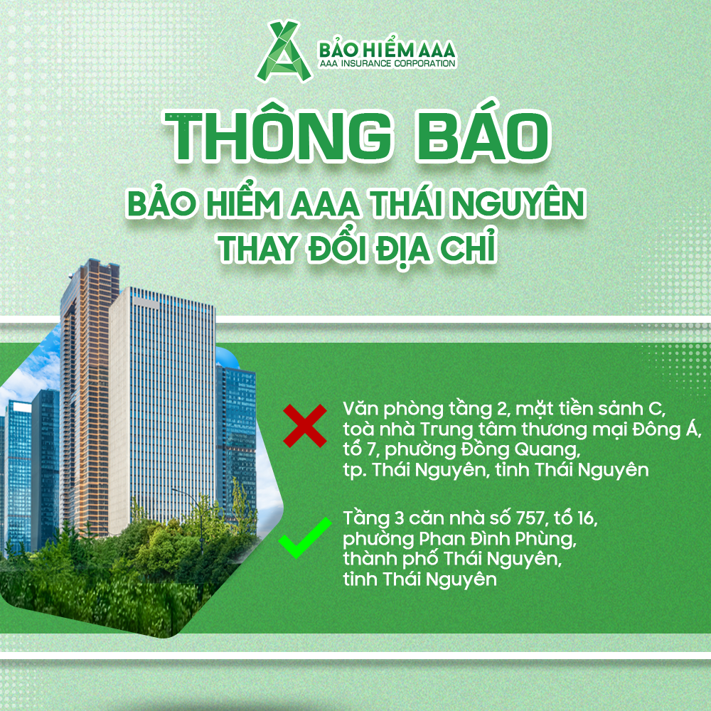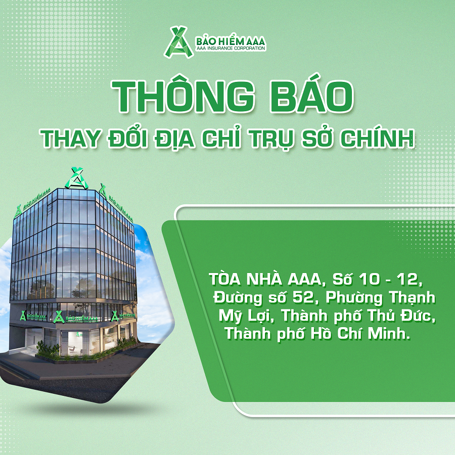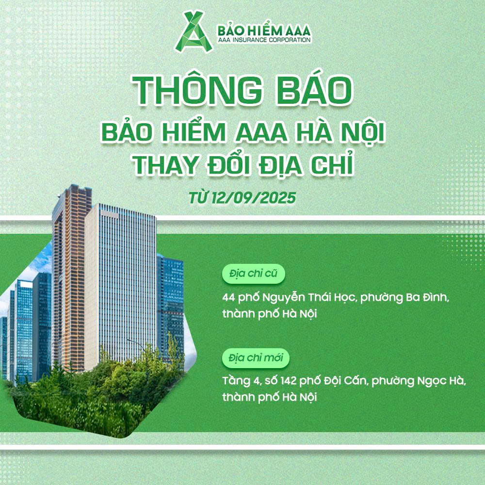 Căn cứ theo Công văn số 3236/BTC-QLBH ngày 18/03/2026 của Bộ Tài chính về việc Thay đổi địa điểm AAA Chi nhánh Rạch Giá, Tổng Công ty trân trọng thông báo đến Quý Cơ quan, Quý Đối tác, Quý Khách hàng và các Đơn vị trực thuộc Tổng Công ty về việc thay đổi địa điểm Chi nhánh Rạch Giá thuộc Tổng Công ty Cổ phần Bảo hiểm AAA kể từ ngày 18/03/2026 như sau: